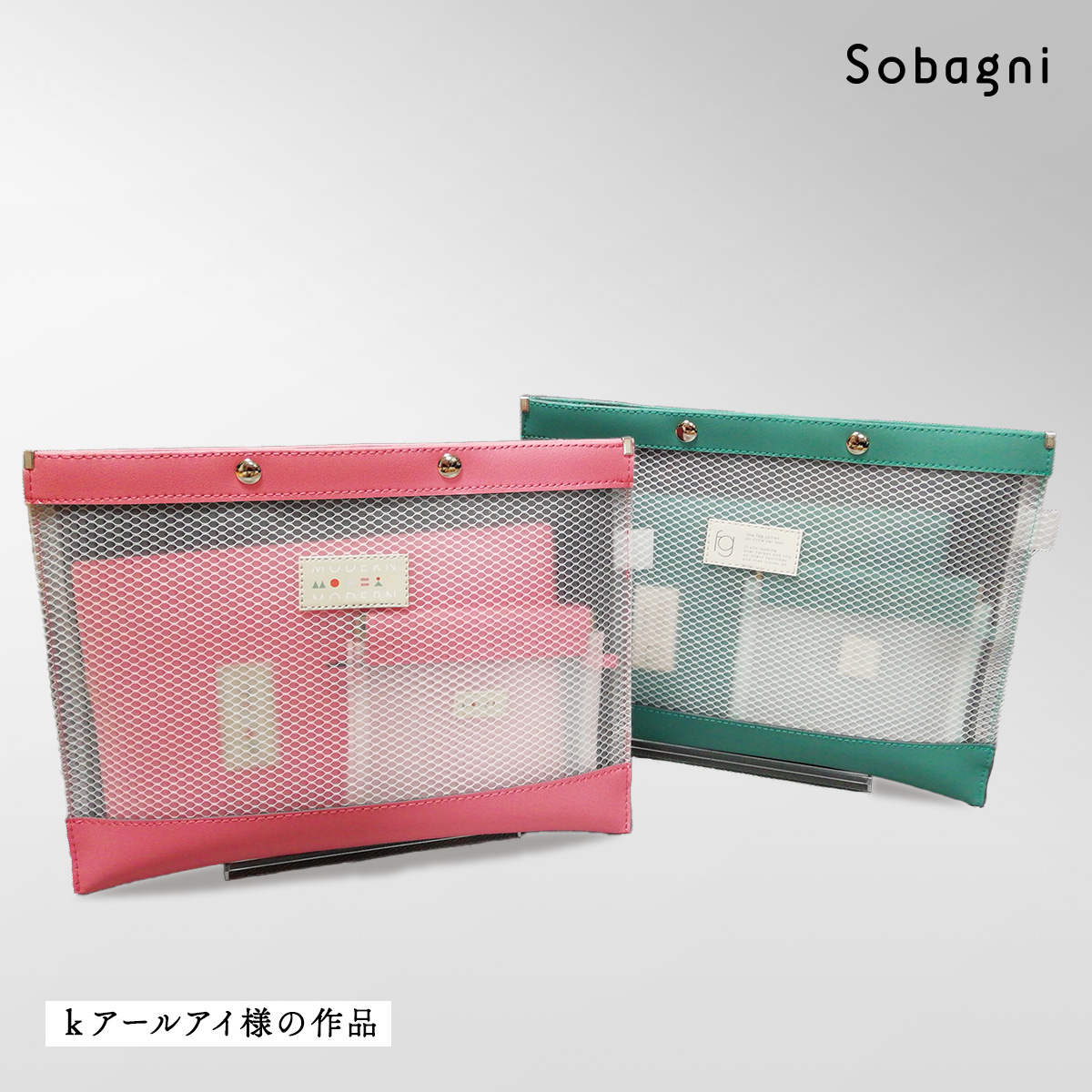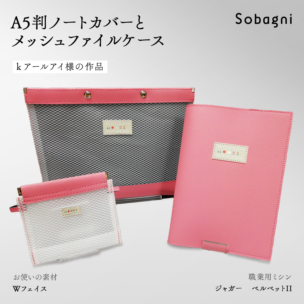 SobagniのWフェイスを使って、ノートカバーとファイルケース、ポーチを作ってくださったkアールアイ様。