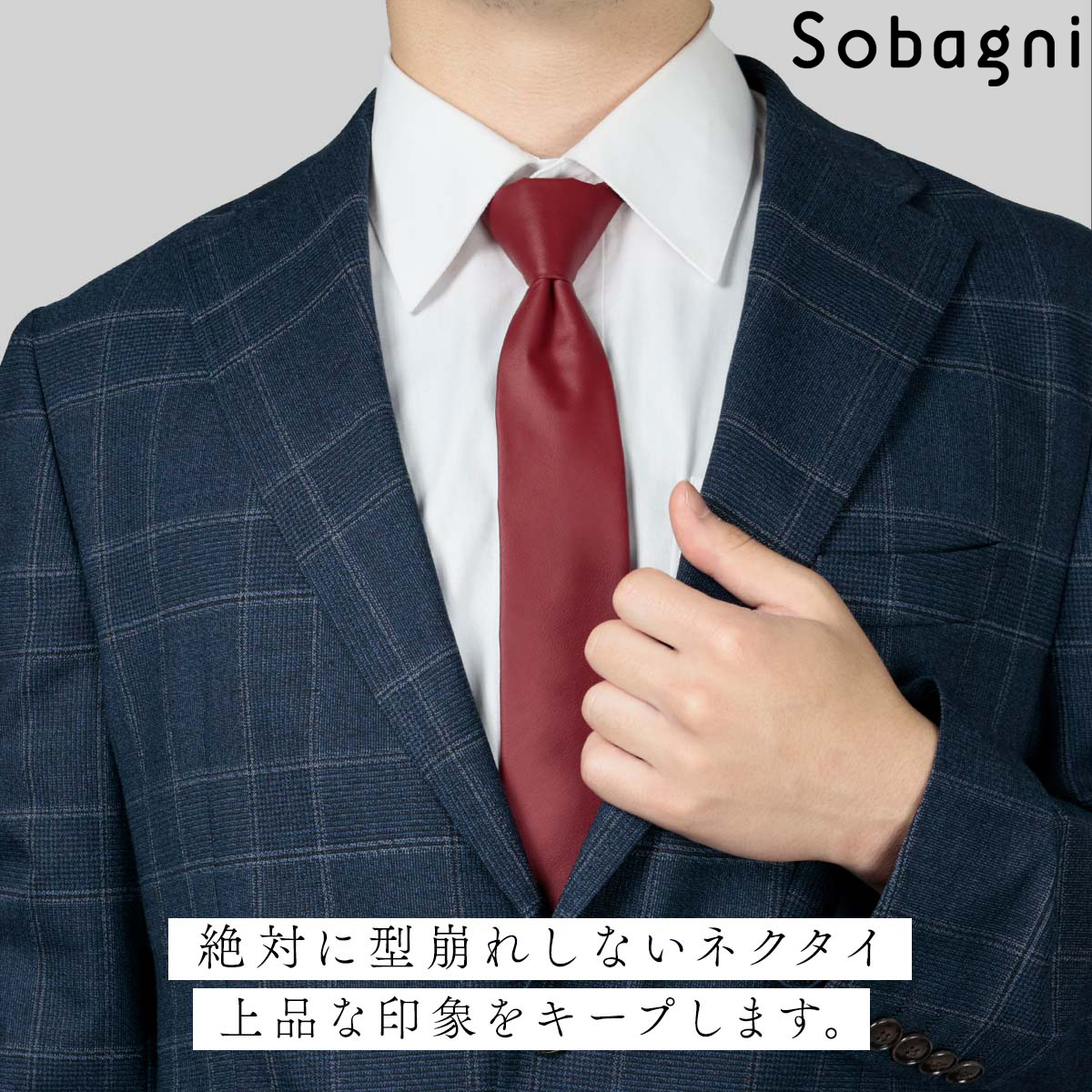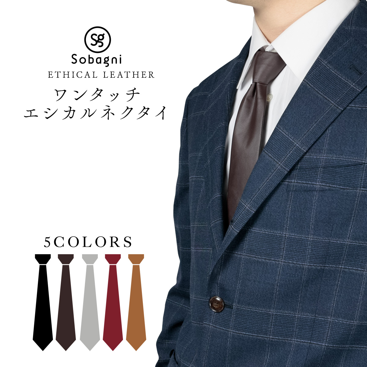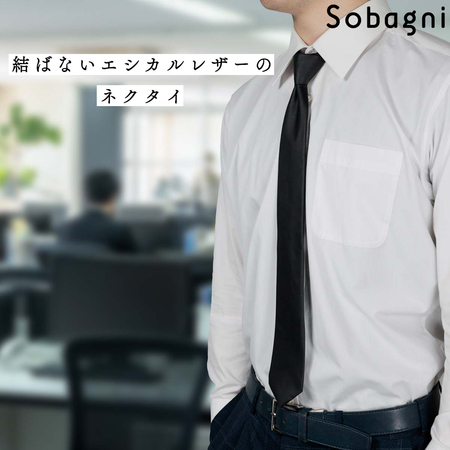 そんなエシカル合皮素材で作ったSobagniのネクタイはもちろん軽い。長時間お使いいただいてもまるでつけていないよう。
