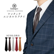 ソバニ公式 ワンタッチ ネクタイ 簡単 ファスナー 軽量 おしゃれ かっこいい カジュアル ビジネス 結婚式 個性的 ギフト プレゼント 日本製 合皮 エシカル合皮 送料無料 ブラック ブラウン グレー レッド ヴィーガンファッション