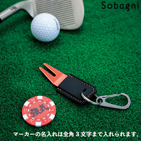 ボールマーカーには名入れのサービスも承っております。大切な方へのちょっとしたプレゼントにいかがでしょうか。ご希望のお客様はコメント欄にてお伝えくださいませ。名入れは全角3文字(半角6文字)まで可能です。