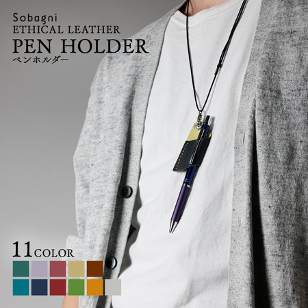 ソバニ公式 ペンホルダー メガネホルダー サングラスホルダー ネックストラップ 調整可能 軽い 軽量 おしゃれ かっこいい プレゼント ギフト ボールペン 眼鏡 サングラス 老眼鏡 日本製 【メール便】 ブラック ブラウン ホワイト 計11色 ヴィーガン