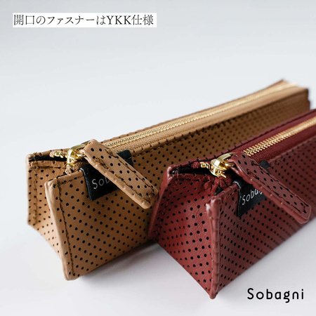また、Sobagniのエシカル合皮は合成皮革でよく見られるボロボロになってしまう加水分解という現象も起こりにくいので、永くご愛用いただけます。 大手企業からも認められている高品質な素材で作られたペンケースです。