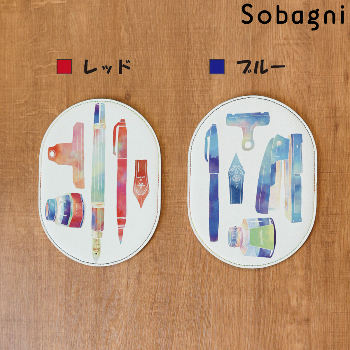 イラストは「赤」「青」の2パターン。それぞれの色で描かれている文房具のイラストが違います。あなた好みの色をお選びいただけます。