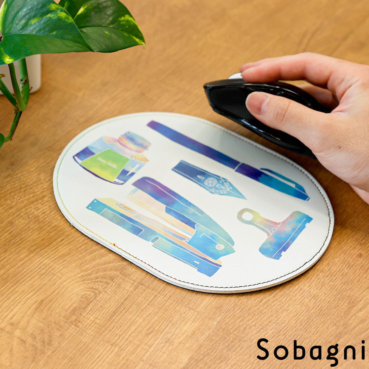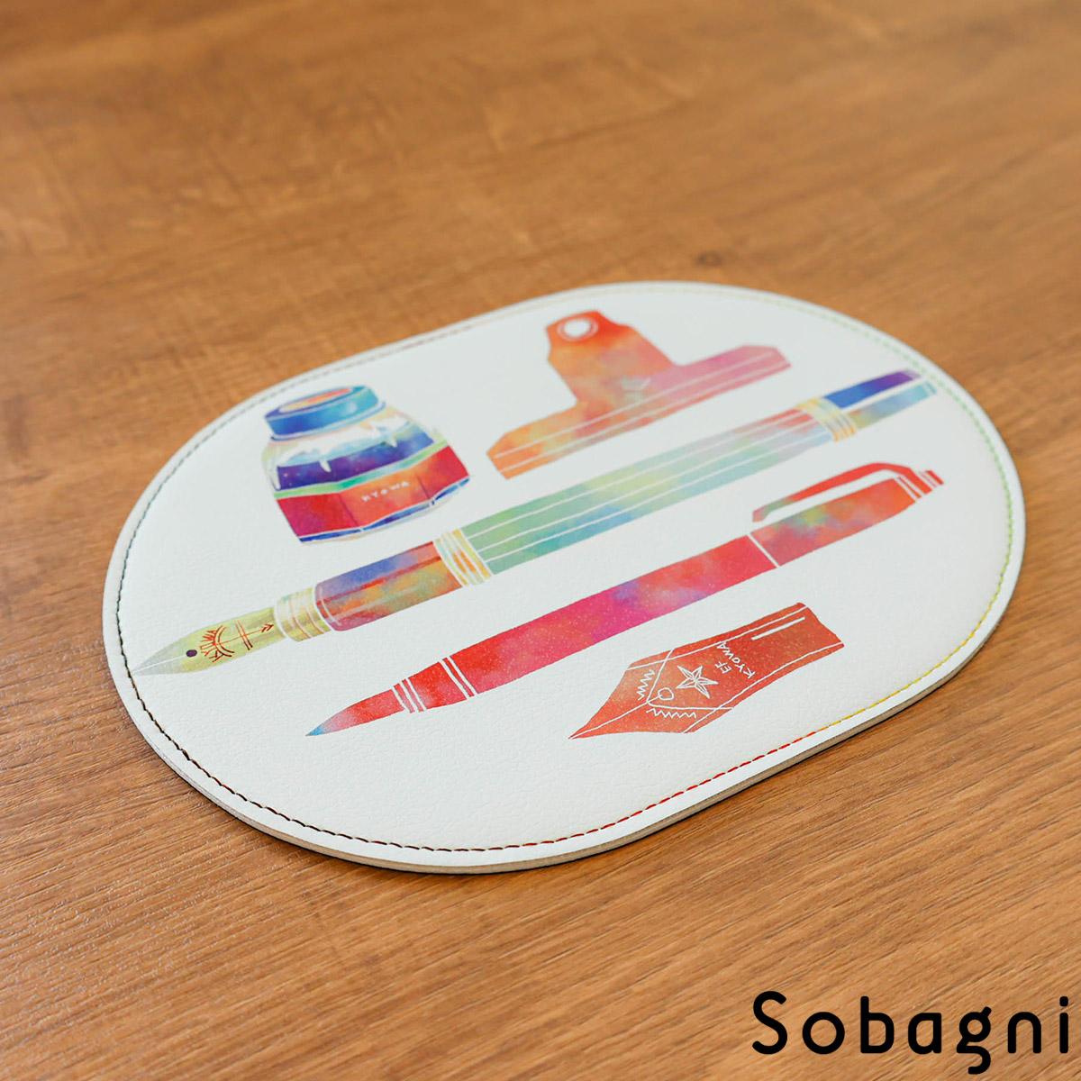クルマのインテリアにも使われている高級なエシカル合皮で仕立てた、マウスパッドです。厚みが3mmでしっかりとした素材感。アクセントで入ったステッチによって、シンプルながらもこだわりを感じさせるつくりとなっています。