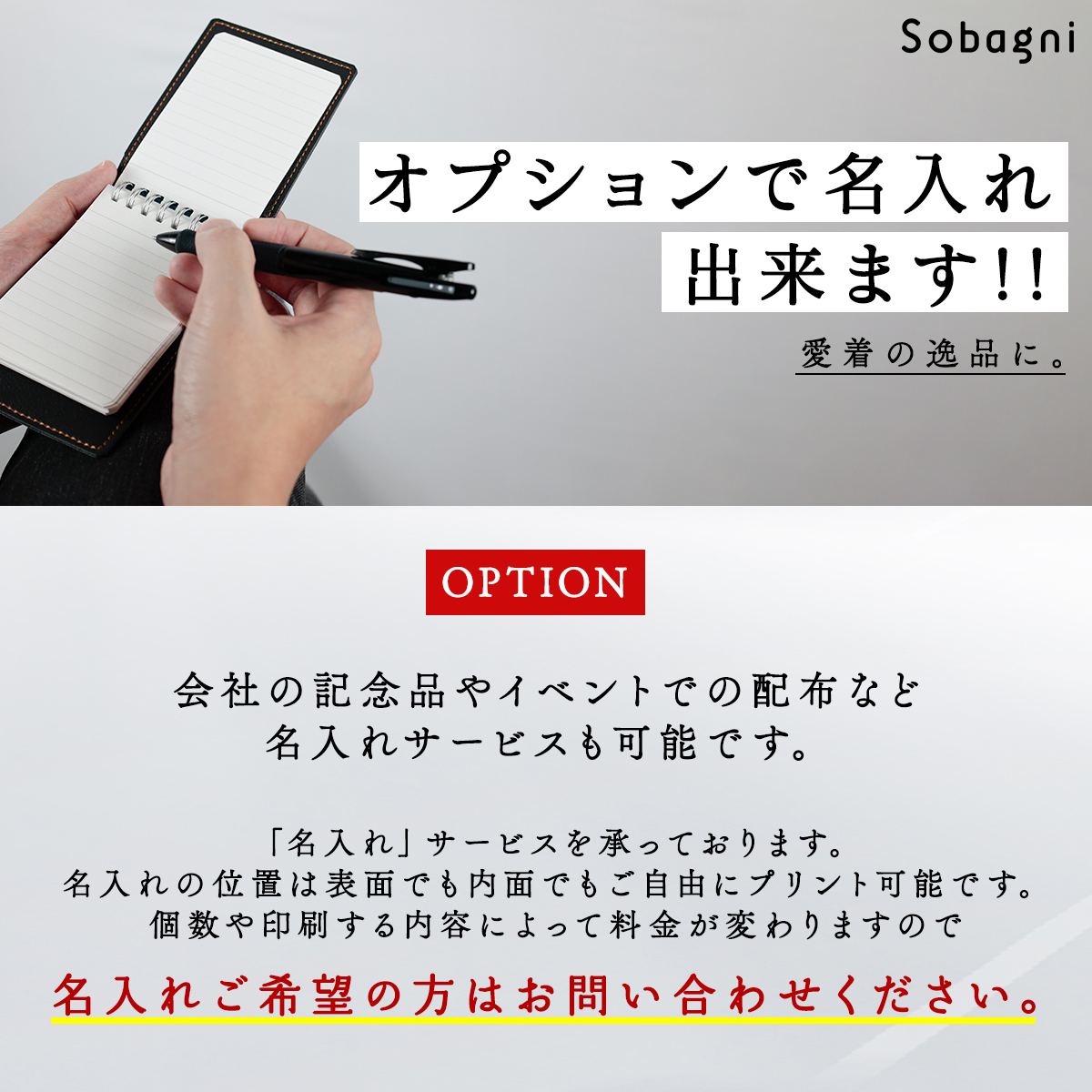 会社の記念品やイベントでの配布など、名入れ等のサービスもできます。
