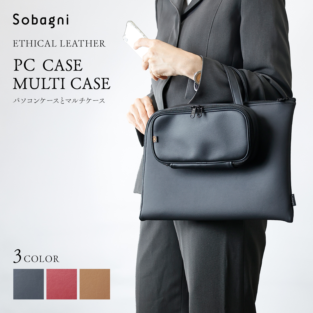 学生さんから社会人まで使いやすいカラーを意識して、PCケースのカラーはブラック・ブラウン・レッドの3色。