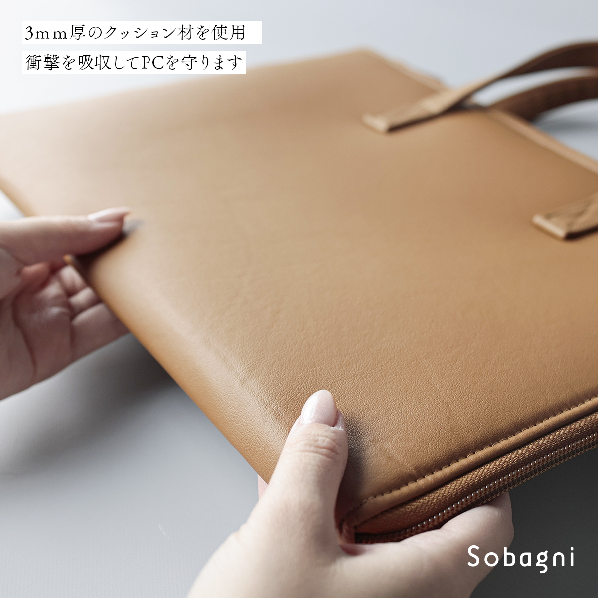 クッション材付きエシカル合皮で大事なPCを守る