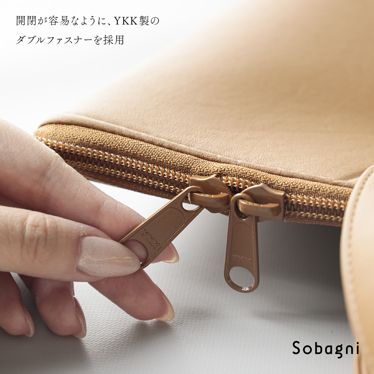 ファスナーはPCケース・マルチケース共にYKK製のダブルファスナーで、開けやすさにも配慮しています。