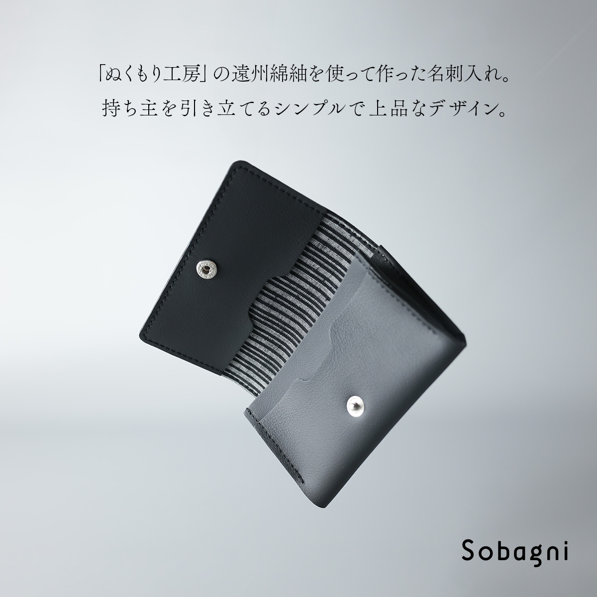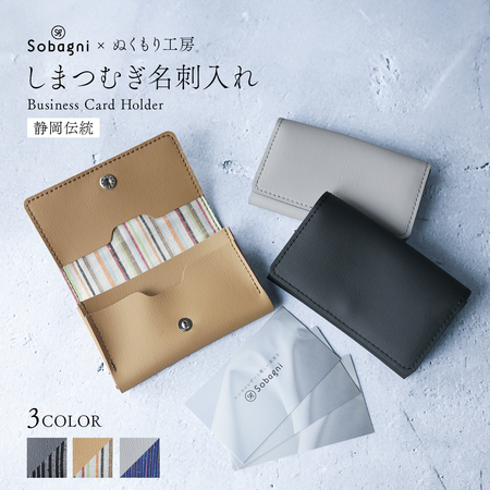 素材には大手企業から認められている国内自社工場製の高品質なエシカル合皮。縫製には、東日本大震災から11年、宮城県南三陸で日々復興に向け取り組まれている縫製会社さんの確かな技術。素材と技術の融合によって生み出された名刺入れです。