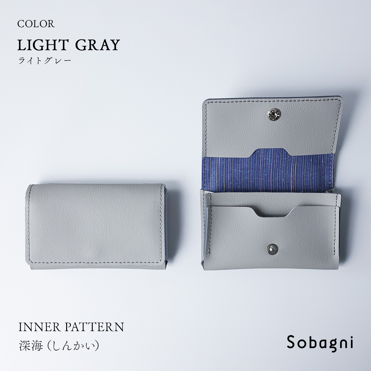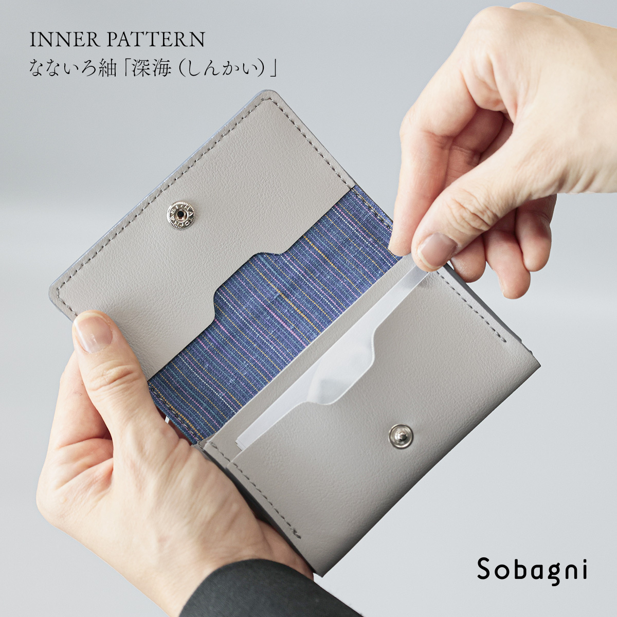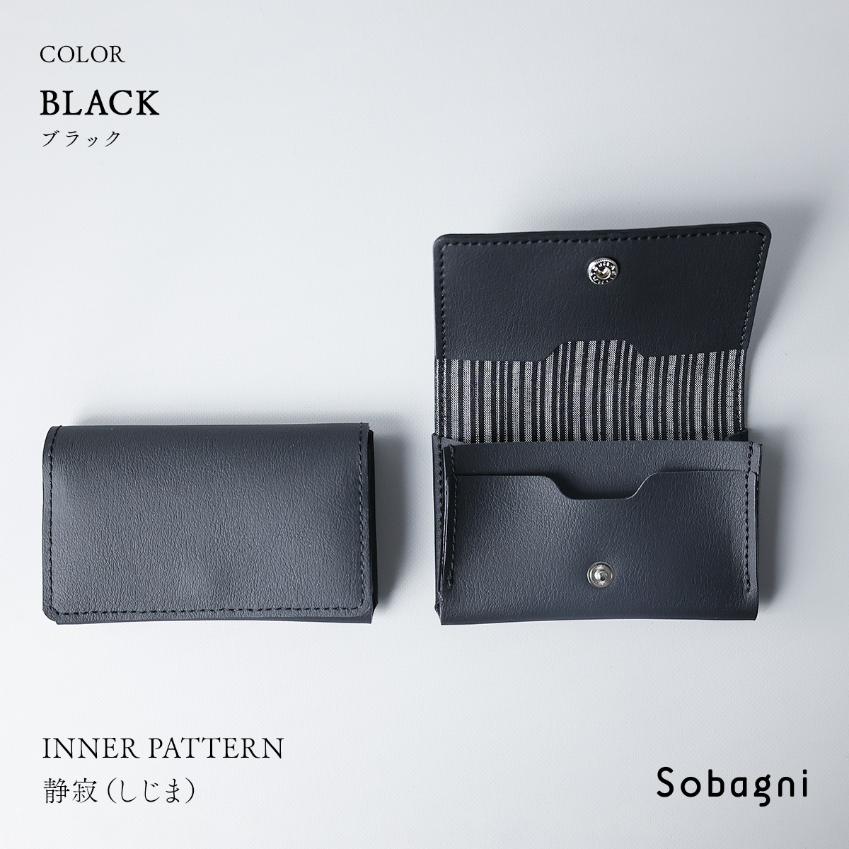 主室は入り口に向かってマチを広げているため、名刺の出し入れがしやすく、中が見やすい仕様です。