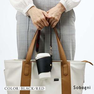 ソバニ公式 エシカル合皮 カップホルダー ドリンクホルダー ホワイト×グレー ブラウン×ベージュ ブラック×レッド ヴィーガン