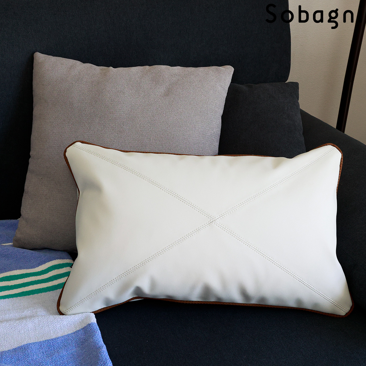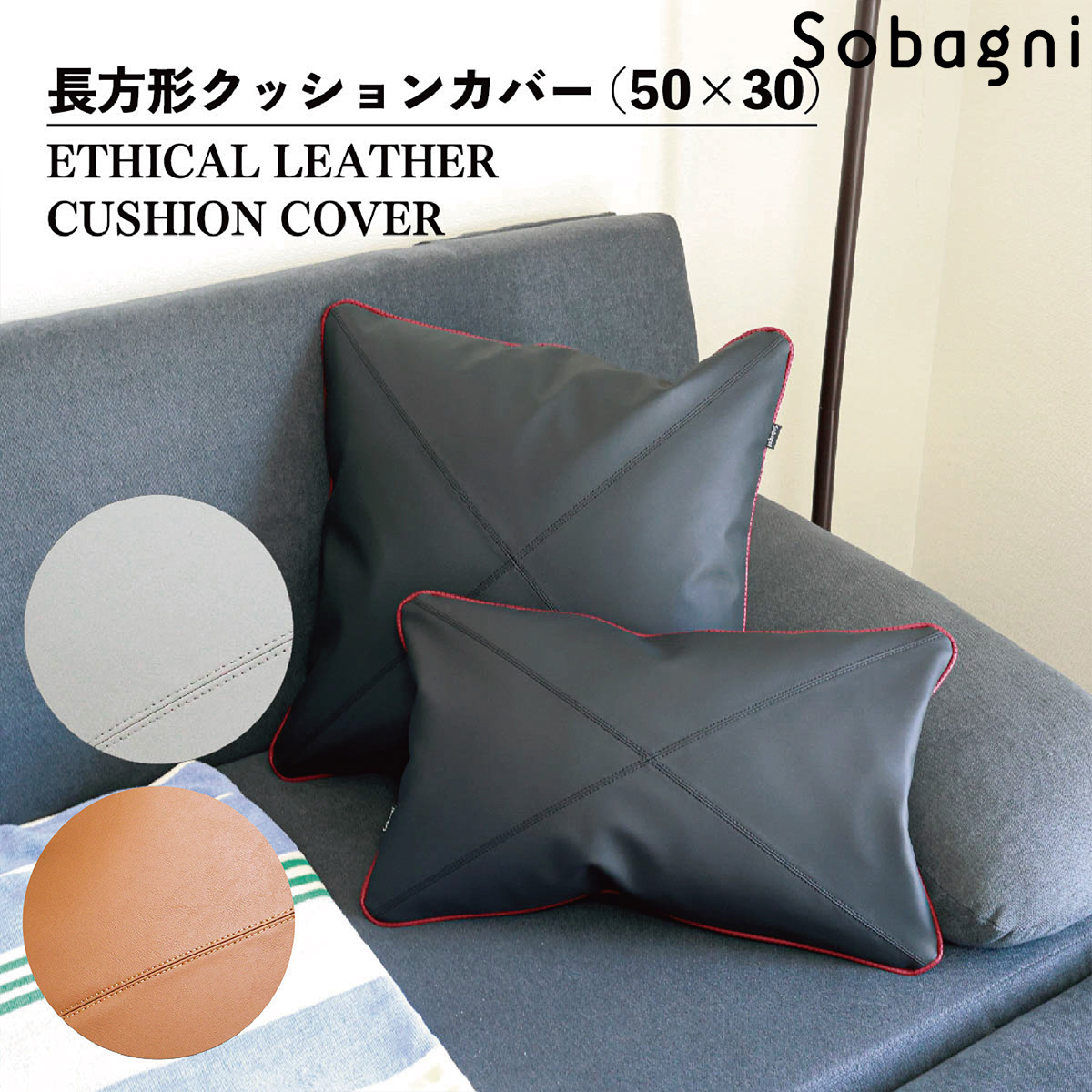 ソバニ公式 クッションカバー 長方形 合皮 高級 高耐久 合皮 ギフト シンプル 国産エシカル合皮 フェイクレザー インテリア 撥水 防水 防汚 お手入れ簡単 汚れに強い プレゼント 送料無料 ホワイト ブラック ブラウン