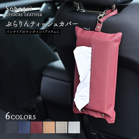 ソバニ公式 ぶらりんティッシュカバー 車 カー用品 リビング オフィス キッチン トイレ 玄関 引っ越し祝い 新築祝い ギフト プレゼント 国産エシカル合皮 パンチング おしゃれ 壁掛け 収納 日本製 合皮 【メール便】 黒 紺 白 計6色 ヴィーガン