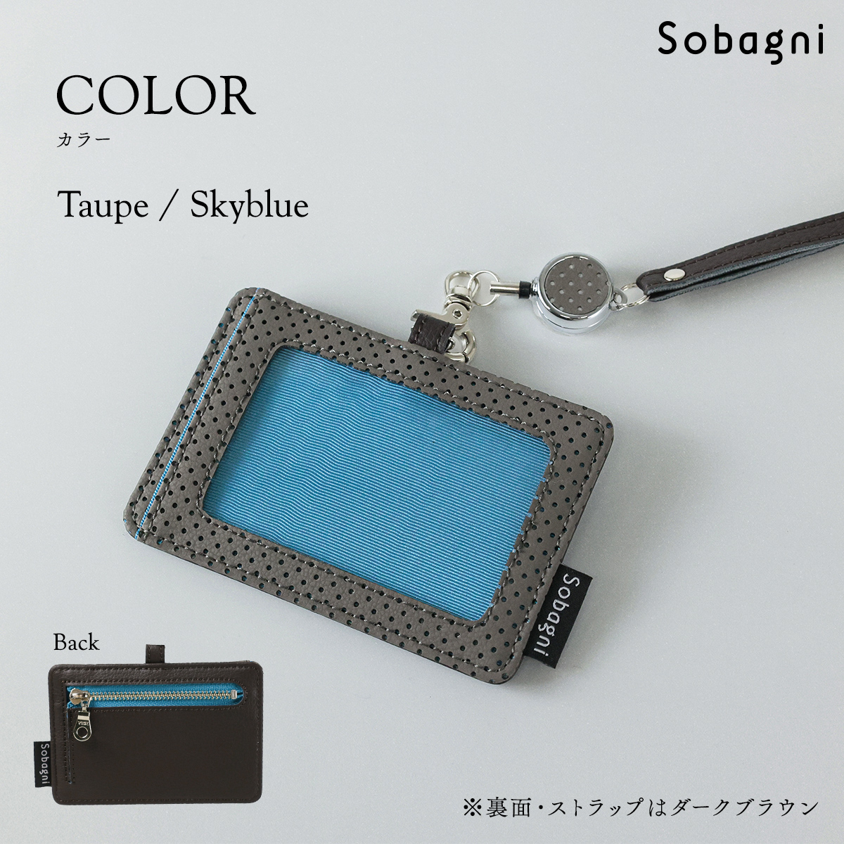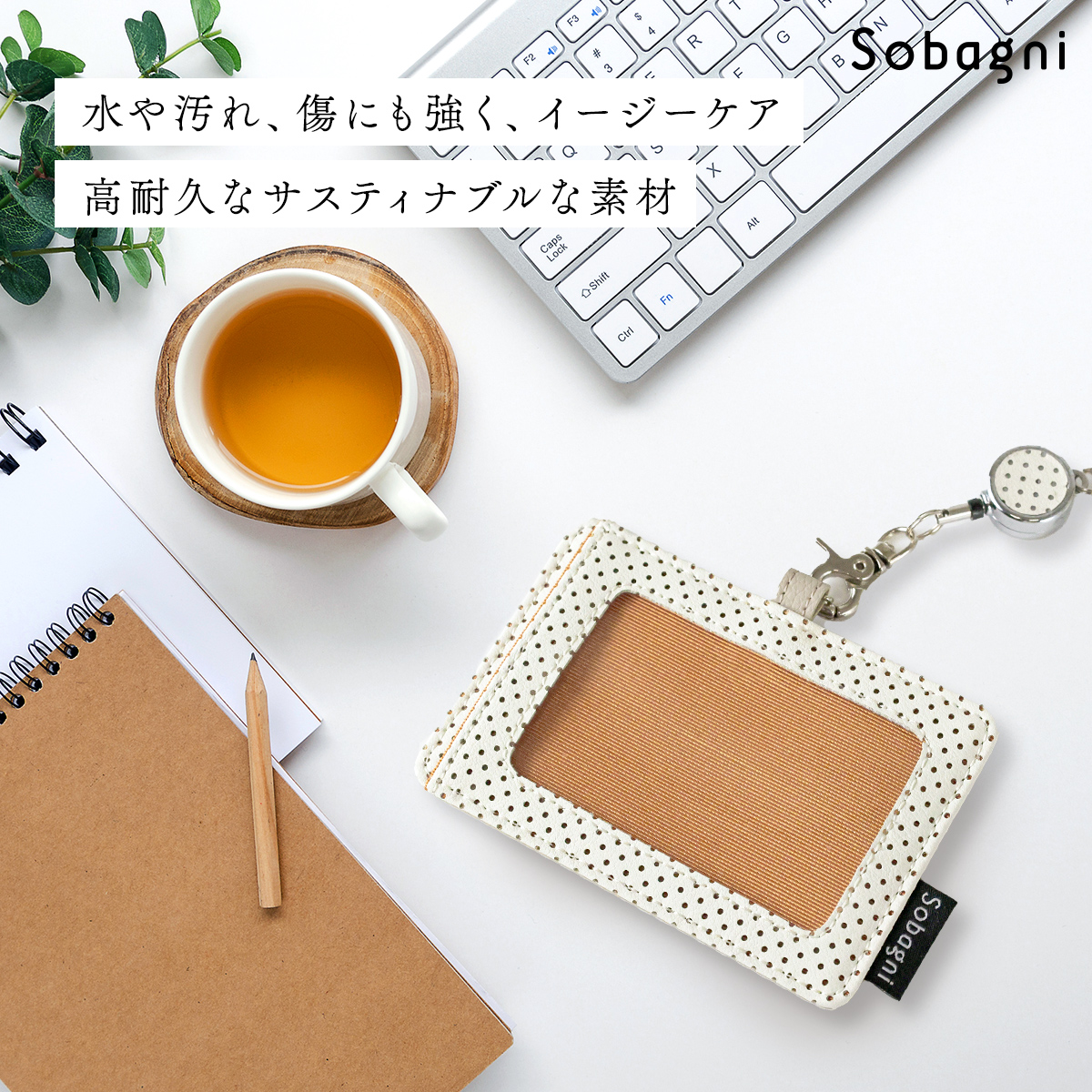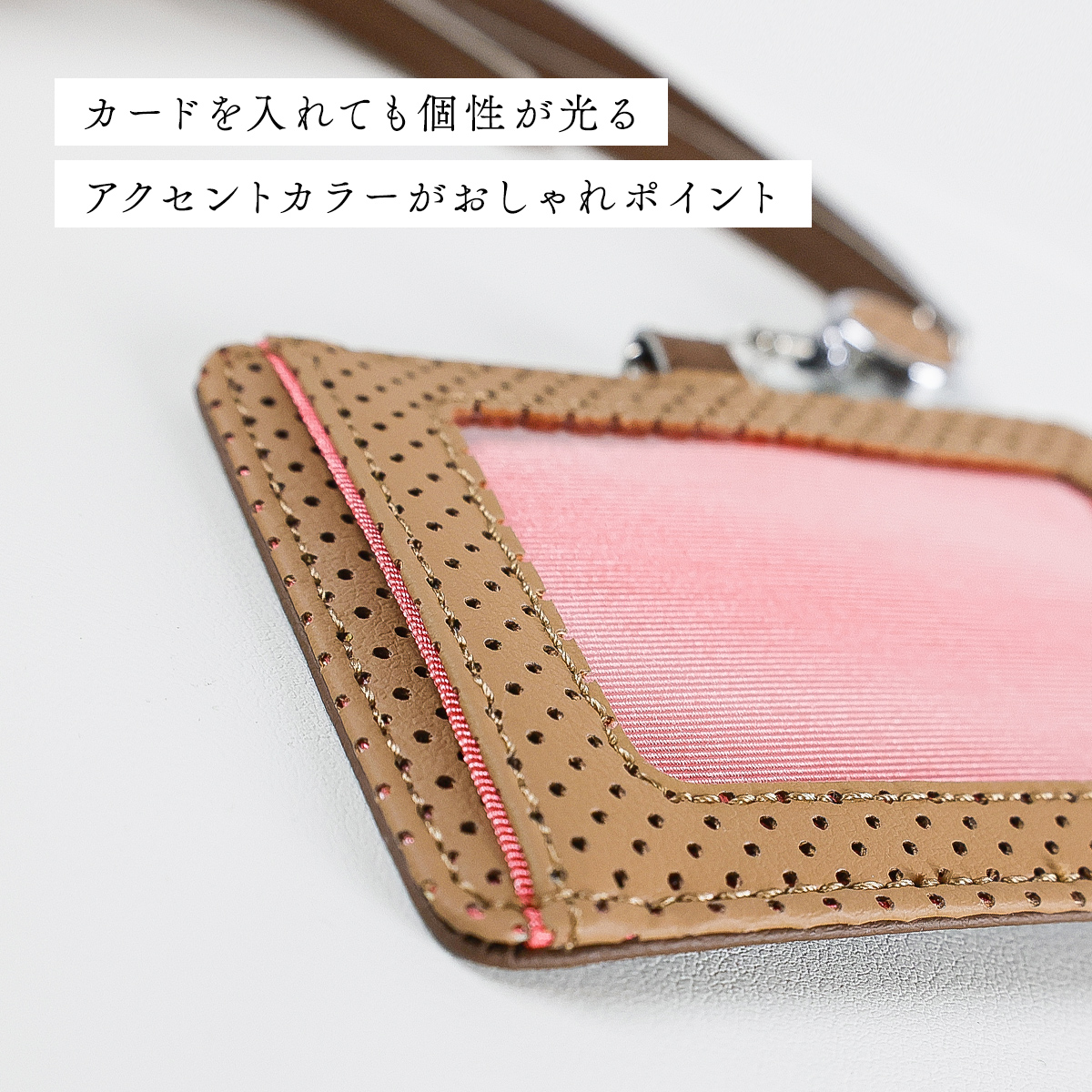 SobagniのIDカードケースはエシカル合皮に「パンチング加工」が施されています。