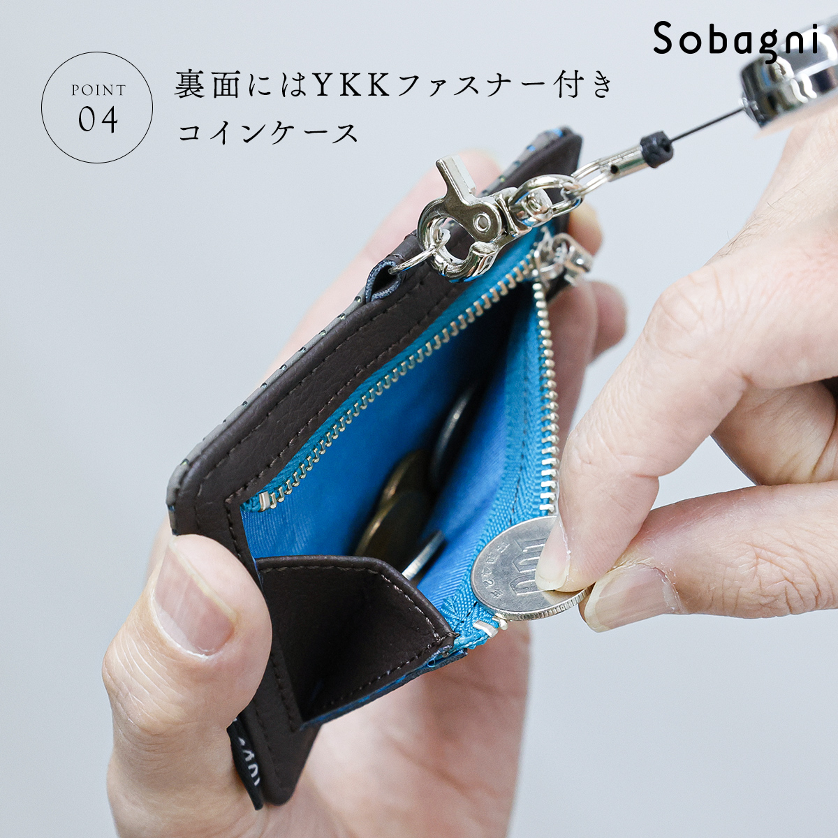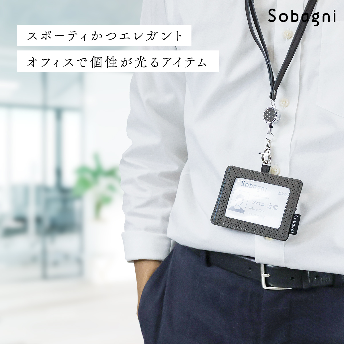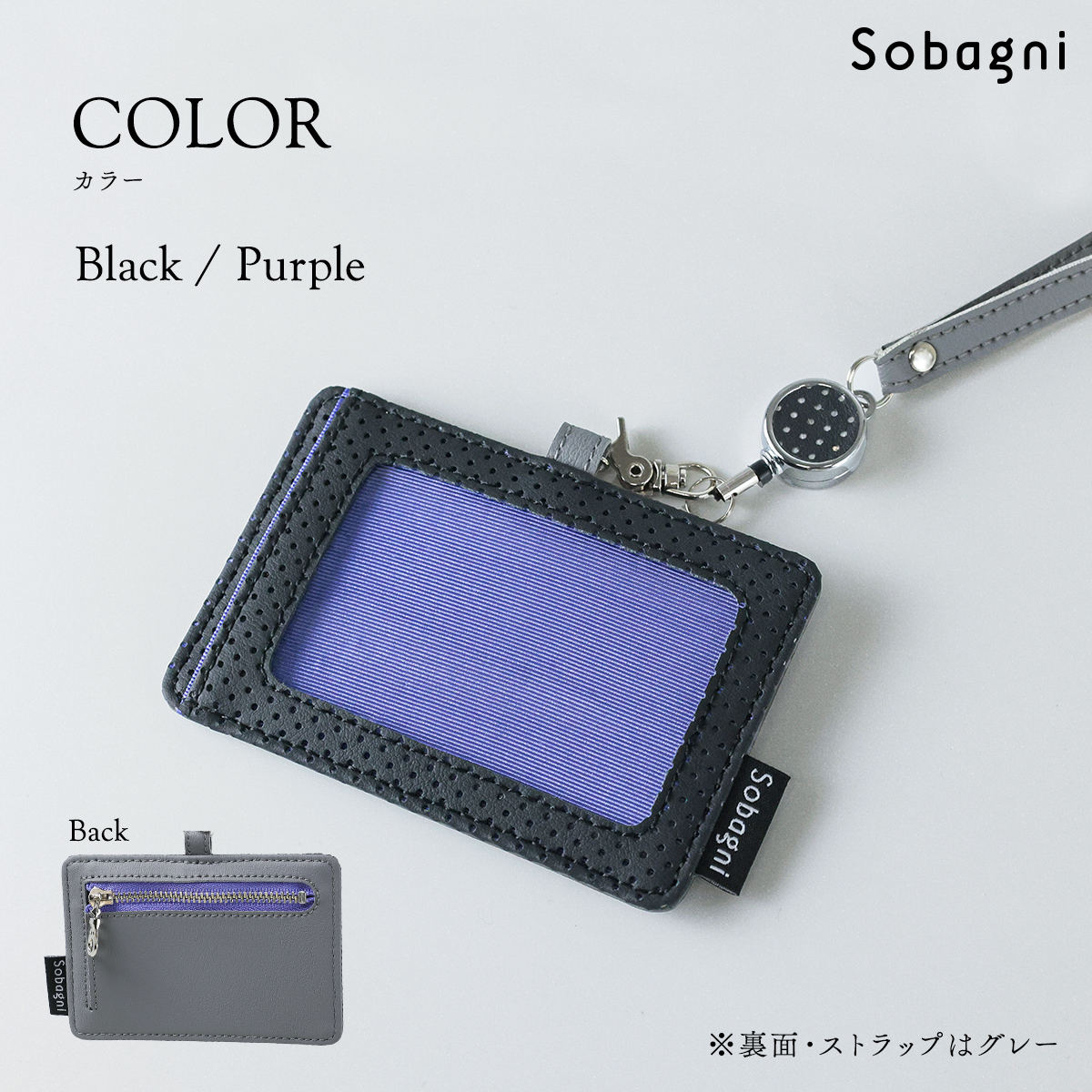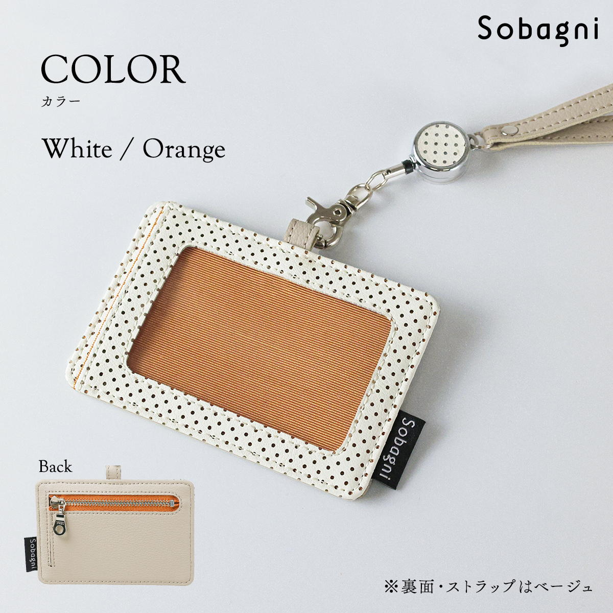 SobagniのIDカードケースはエシカル合皮に「パンチング加工」が施されています。