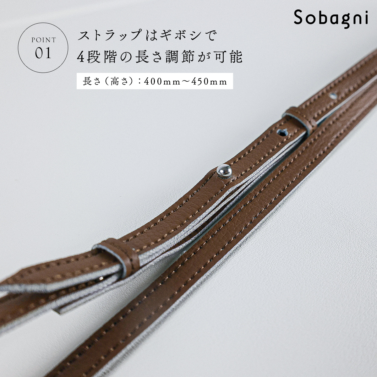 Sobagniは国内自社生産のアニマルフリーなエシカル合皮を使用。
