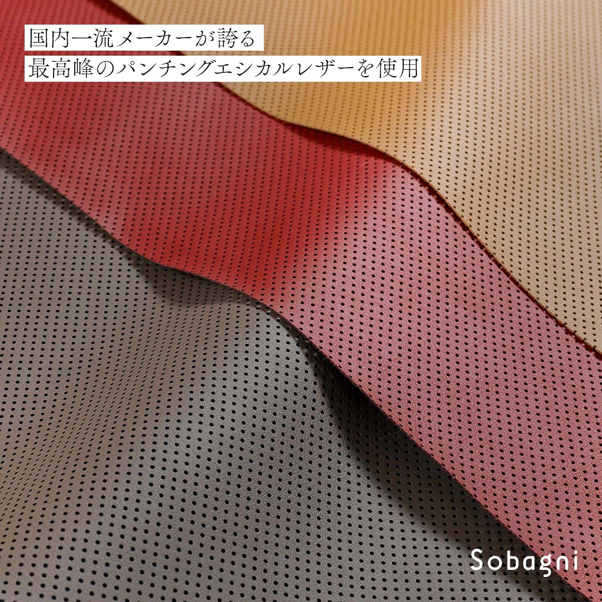 Sobagniは国内自社生産のアニマルフリーなエシカル合皮を使用。