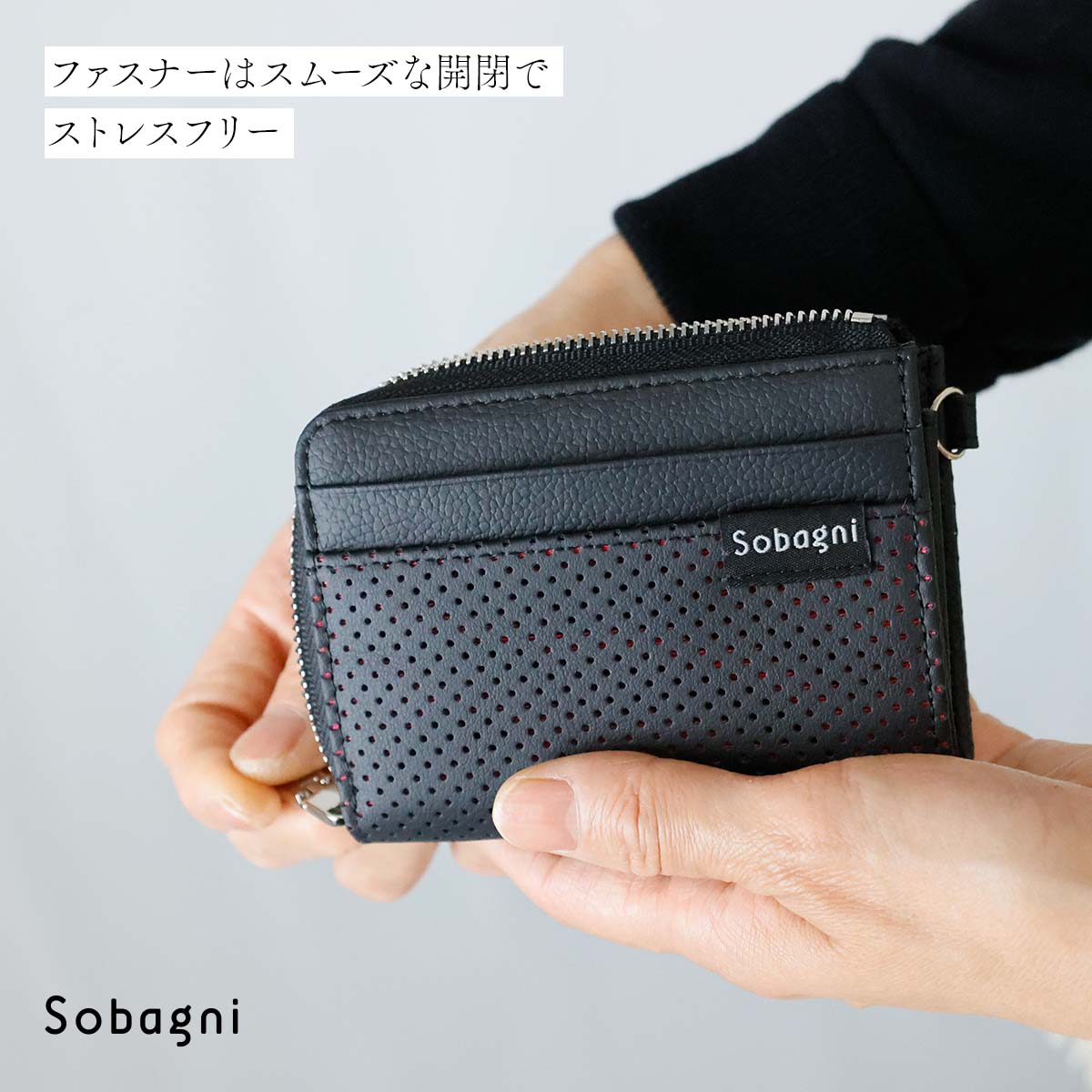 個性が光るパンチングエシカル合皮ミニ財布
