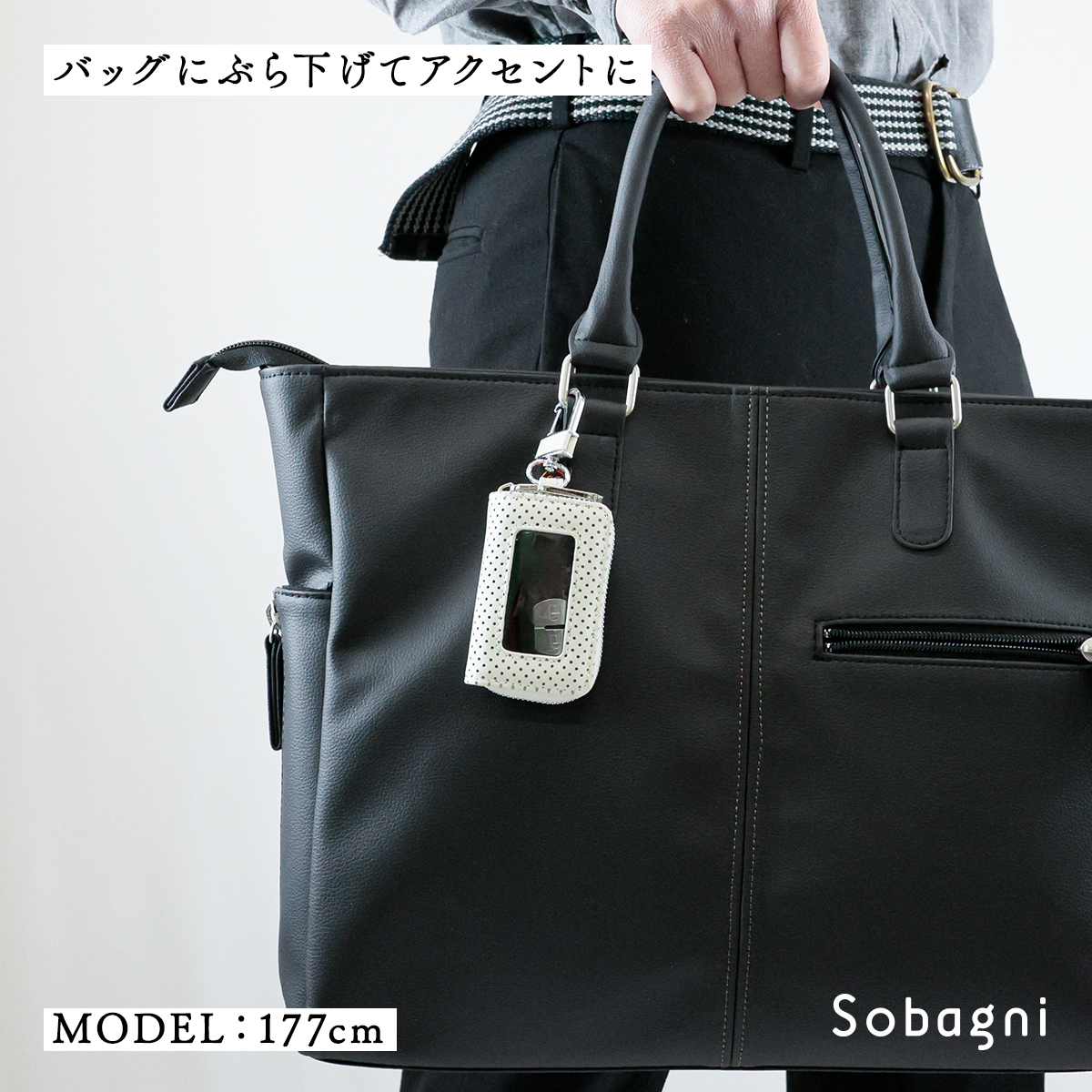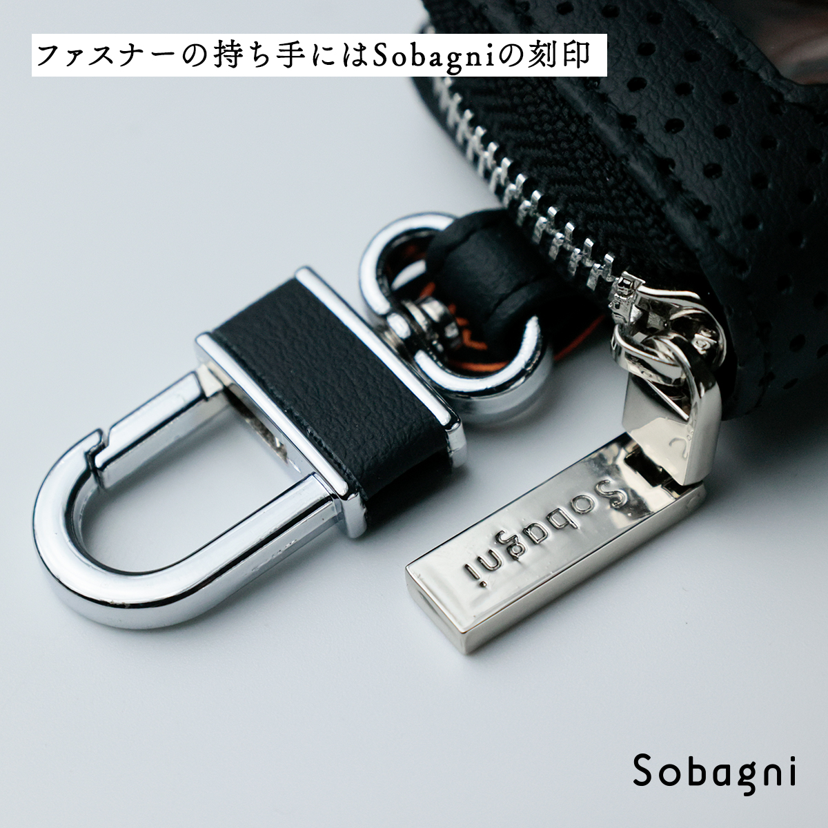 Sobagniのスマートキーケースはエシカル合皮に「パンチング加工」が施されています。