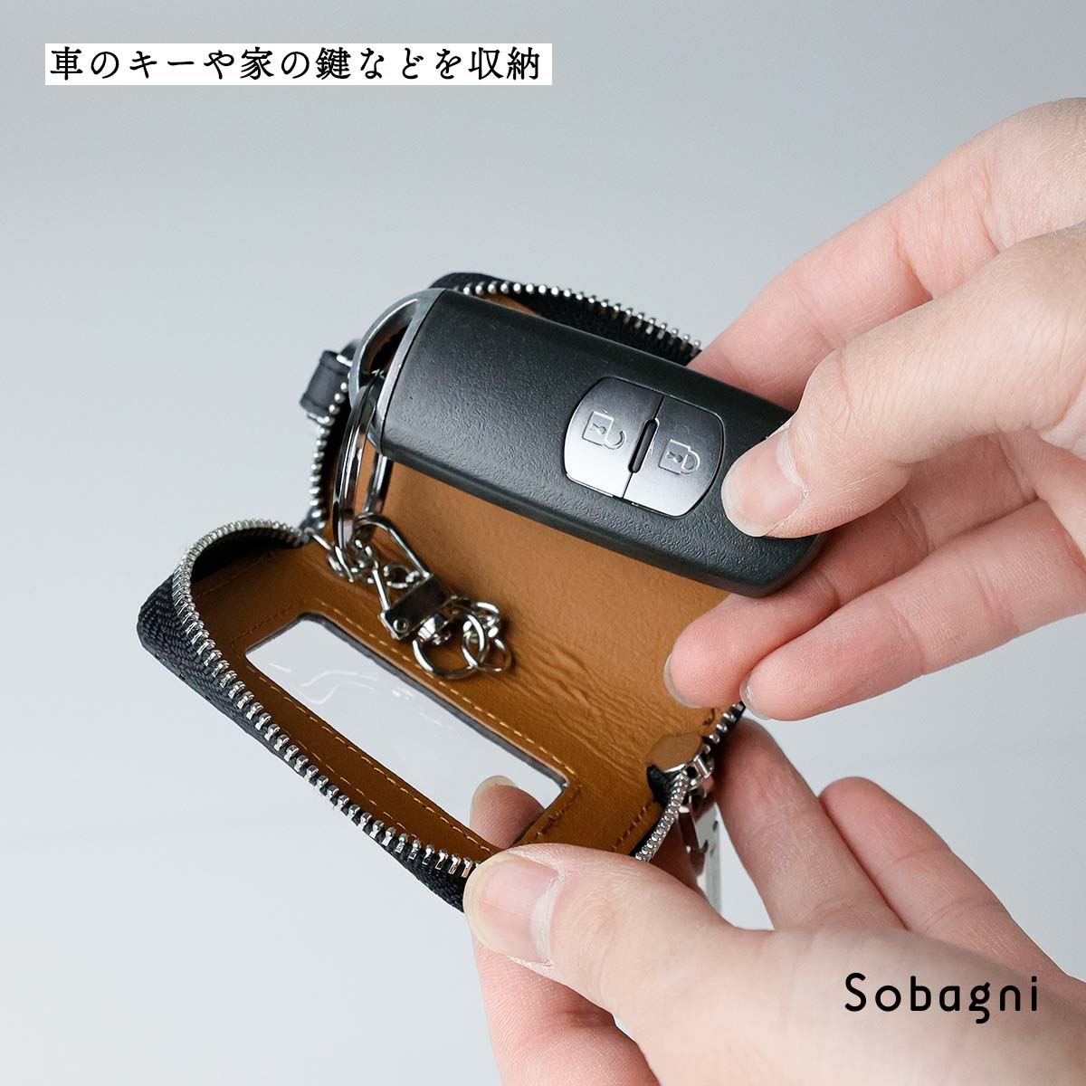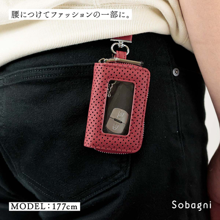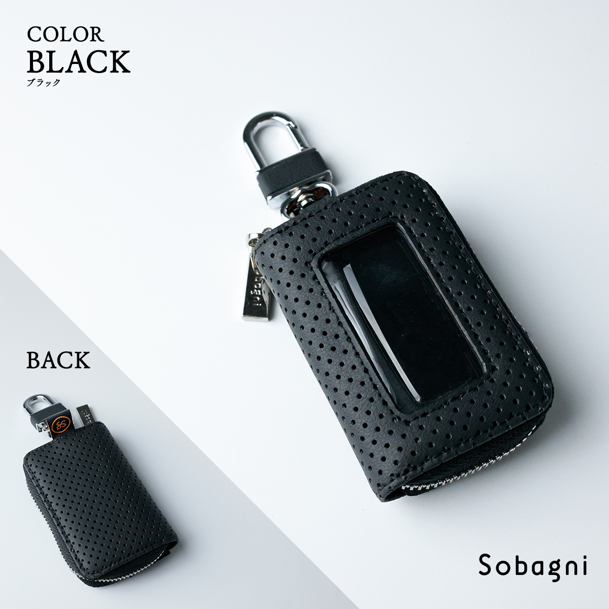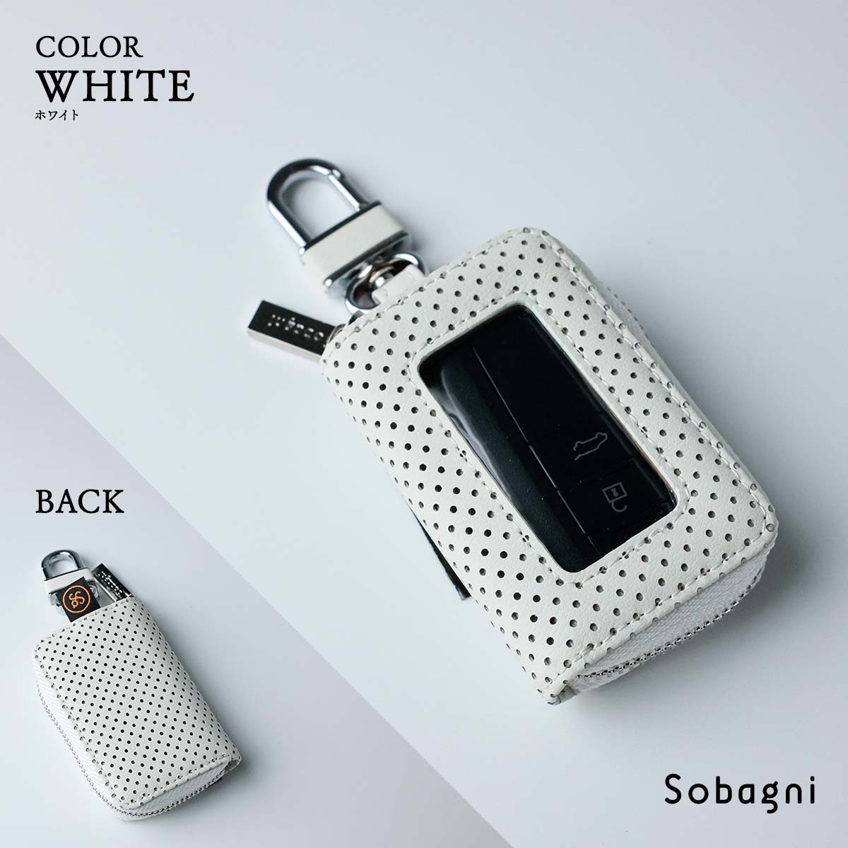 Sobagniのスマートキーケースはエシカル合皮に「パンチング加工」が施されています。
