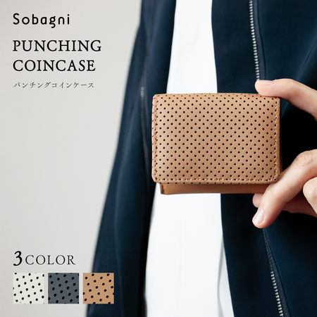 ソバニ公式 エシカル合皮 パンチング コインケース 小銭入れ ミニ財布 使いやすい 小さい ポケットに入る エシカルなギフト エシカルなプレゼント ホワイト ブラウン ブラック ヴィーガン