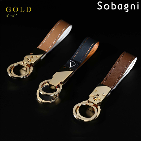 上品な素材感と独特の味わいを持つエシカル合皮と重厚感あるゴールドやシルバーのキーリングを組み合せました。