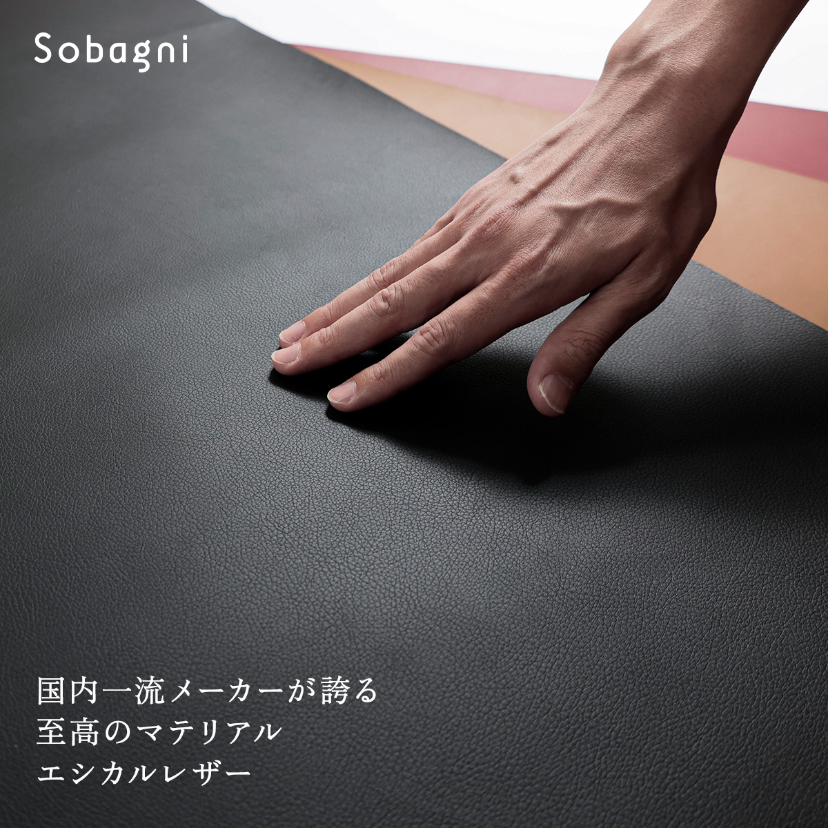 自動車のシートにも使われている高品質・高質感のSobagniのエシカル合皮。
