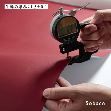 Sobagniのエシカル合皮の中でも、中厚(厚み約1.20mm)・軽量、適度な伸縮性のあるエシカルソフト。