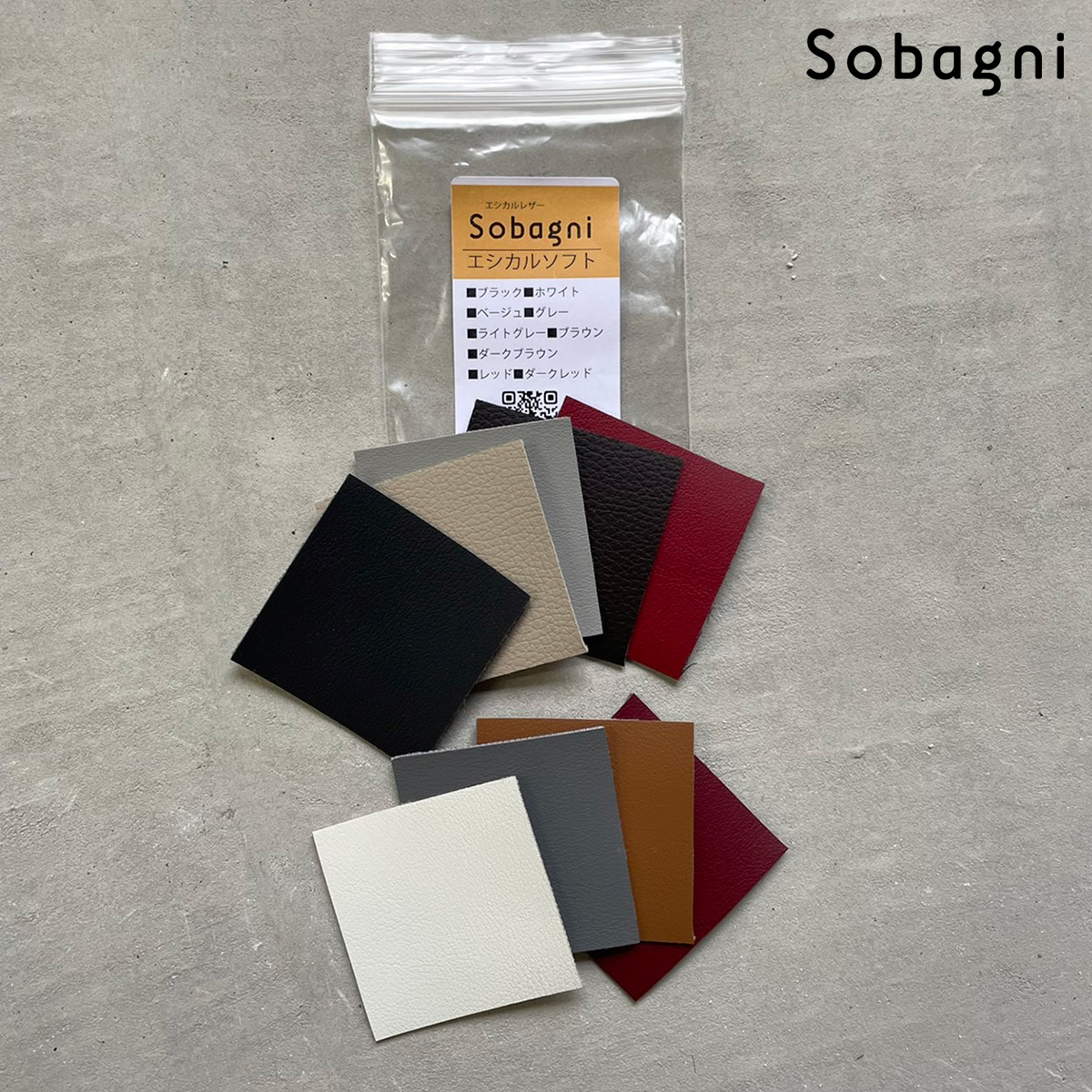 Sobagniエシカル合皮のエシカルソフト色見本(スワッチ)5センチ角×9色
