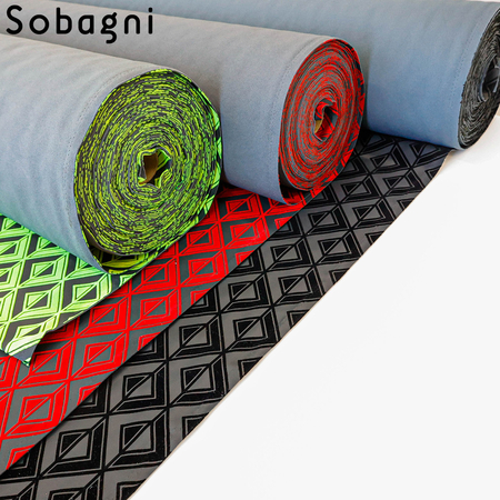 ソバニ公式 フロッキーダイヤ m売り 合皮 素材 1mあたり オリジナル素材 国産エシカル合皮 フロッキー加工 日本製 幾何 ダイヤ柄 植毛加工 135cm幅 1.70mm厚 ストレッチ フェイクレザー ヴィーガン 送料無料 黒 赤 黄緑