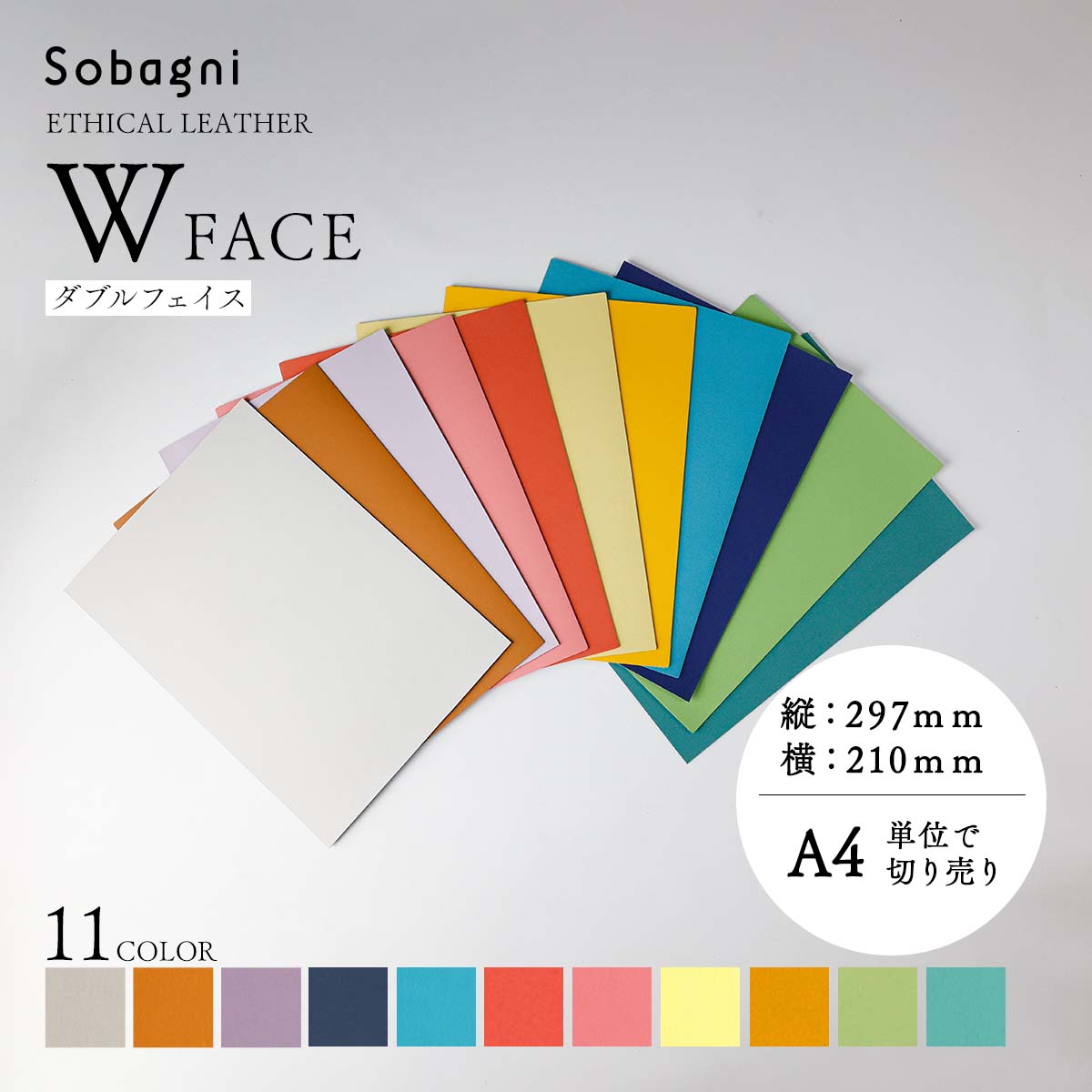 Sobangi ソバニ公式 Wフェイス A4カット売り 合皮 素材 A4サイズ 国産 エシカル 合皮材料 ダブルフェイス リバーシブル 両面合皮 自社生産 工場直販 手芸 雑貨用 軽量 加水分解しない 日本製 ツヤなし 1.20mm厚  【メール便】 グリーン ピンク ブルー イエロー ブラウン ホワイト パープル ブラック スイカ 瑠璃色 ライトグレー メロン ゆず