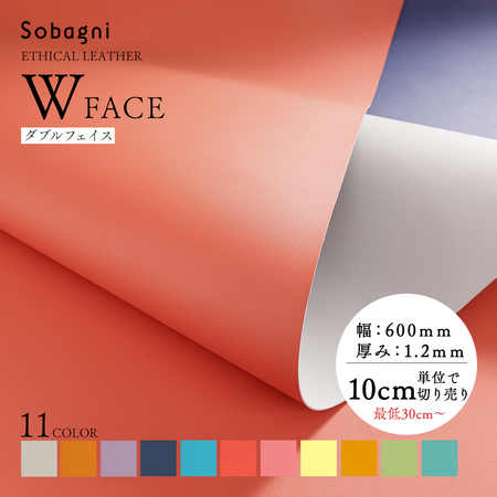 ソバニ公式 Wフェイス 切り売り(30cm〜10cm単位で注文可能) 素材 国産エシカル合皮 ダブルフェイス リバーシブル 軽量 60cm幅 高耐久 撥水 防水 加水分解しない お手入れ簡単 日本製 合皮 ツヤなし マット仕上げ ヴィーガン ブルー ホワイト ブラウン 計11色
