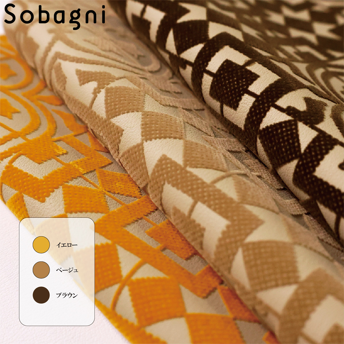 ソバニ公式 フロッキーモロッコタイル 【30センチより10センチ単位で購入可能】 合皮 素材 オリジナル 国産 エシカル 合皮 フロッキー加工 ハンドメイド 手芸 日本製 モロッコタイル柄 トルコタイル 植毛加工合成皮革 肌触り ヴィーガン 135cm幅 1.70mm厚 イエロー ベージュ ブラウン