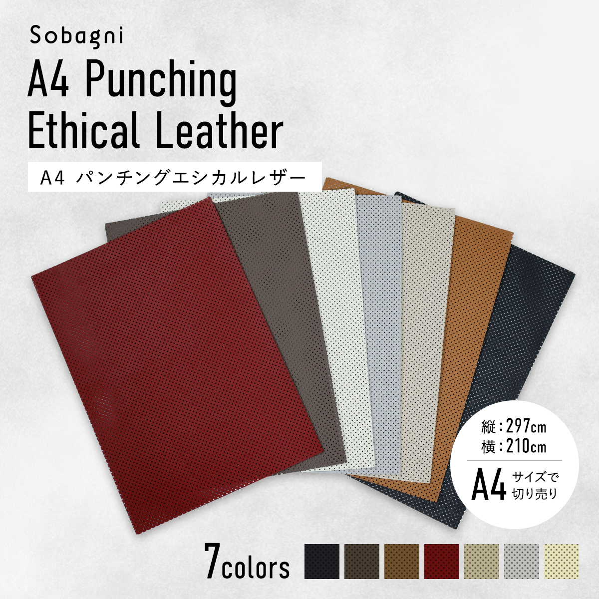 ソバニ公式 パンチングエシカル合皮 A4カット売り ハンドメイド 工場直販 自動車規格 生地 高耐久 日本製 合皮 ヴィーガン エシカル合皮 1.2mm厚 【メール便】 ベージュ ブラック レッド 計7色