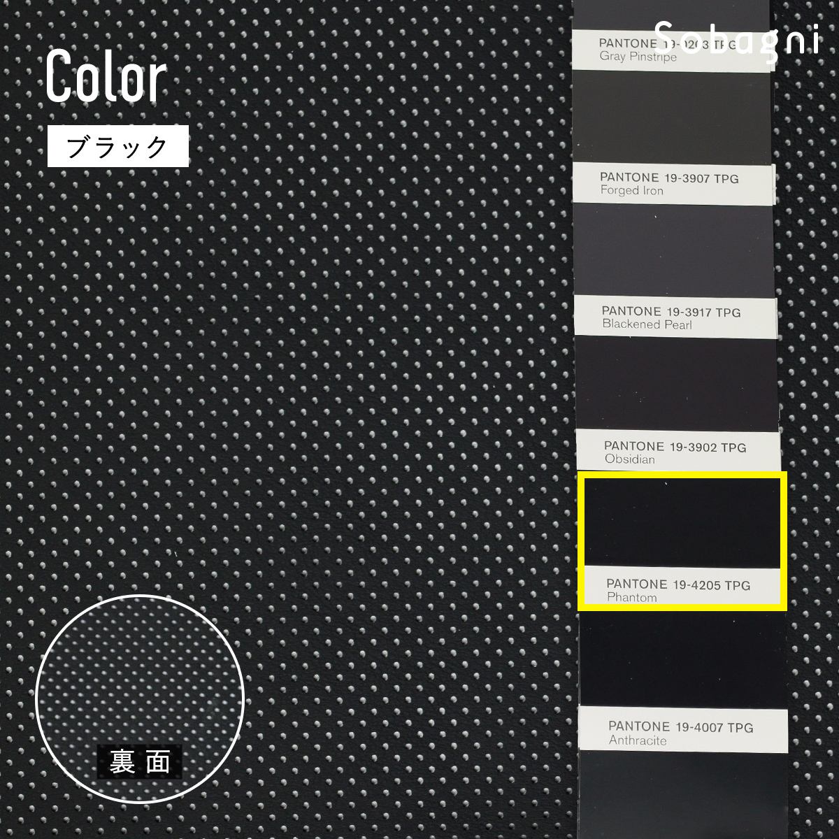 マットな質感とリアルなシボ感に加え、パンチング加工を施す事で、クールでスポーティーな印象の素材に仕上げました。