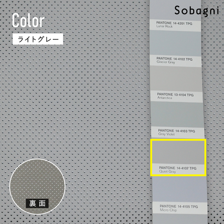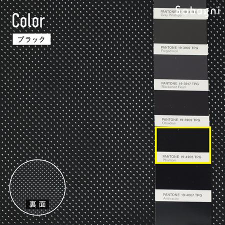 パンチングとは「打ち抜き」を意味し、自動車業界ではパーフォレーションとも呼ばれています。一般的には生地全体に丸穴を等間隔に開ける加工を指す場合が多く、こちらの商品も同様の加工をしています。