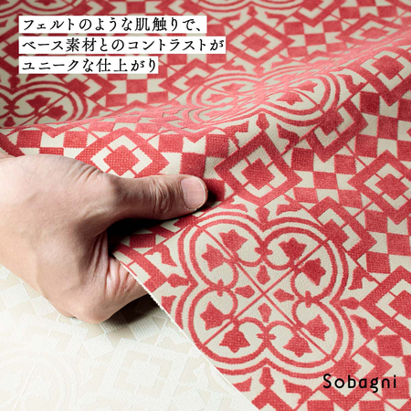 ソバニ公式 フロッキーモロッコタイル 10cm切り売り オリジナル素材 国産エシカル合皮 フェイクレザー フロッキー加工 ハンドメイド 日本製 トルコタイル エキゾチック レトロ モダン 合成皮革 ヴィーガン 135cm幅 1.70mm厚 赤 白 グレー