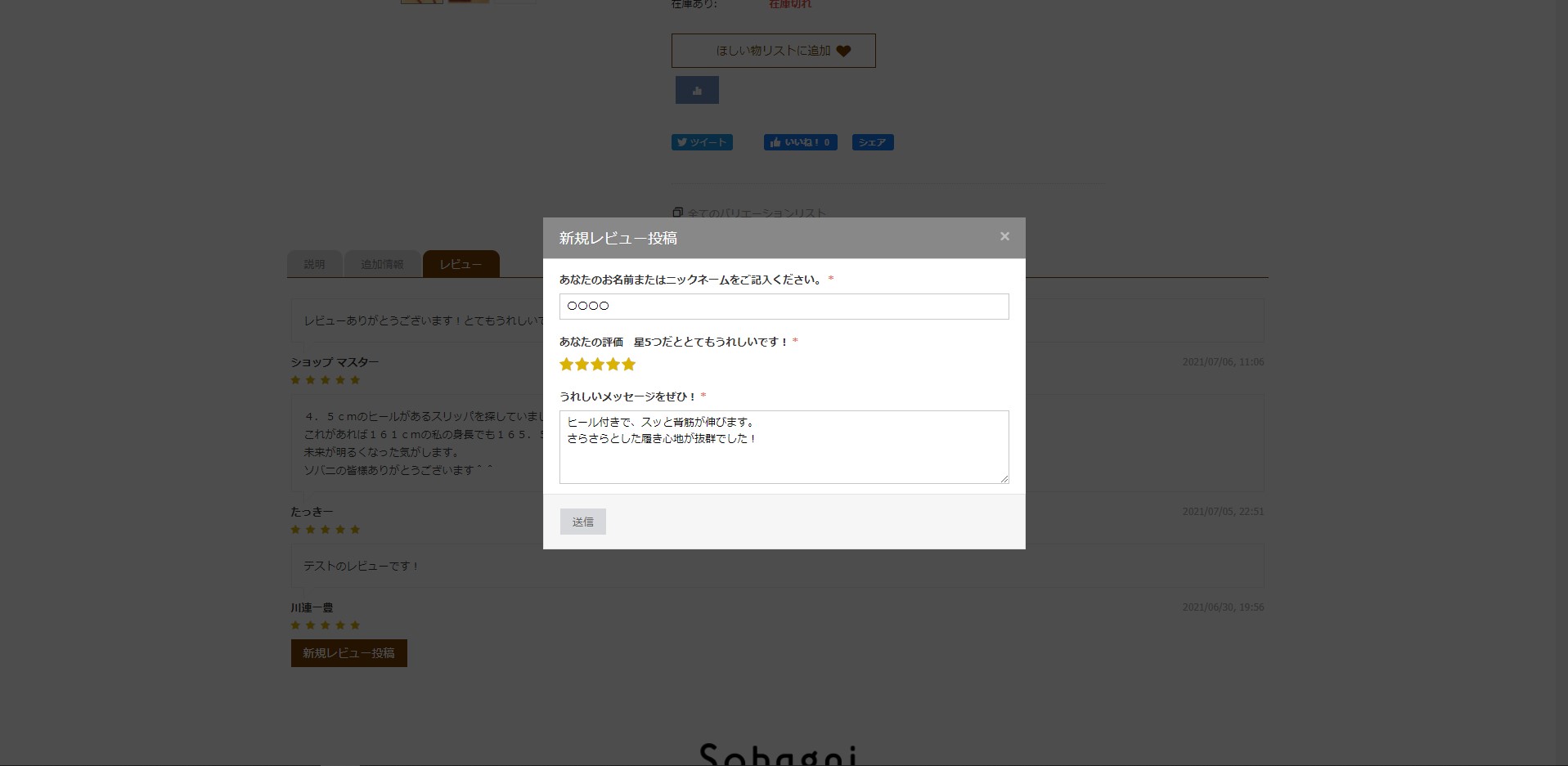 お名前(ニックネーム)、★の数、レビュー内容をご入力ください。