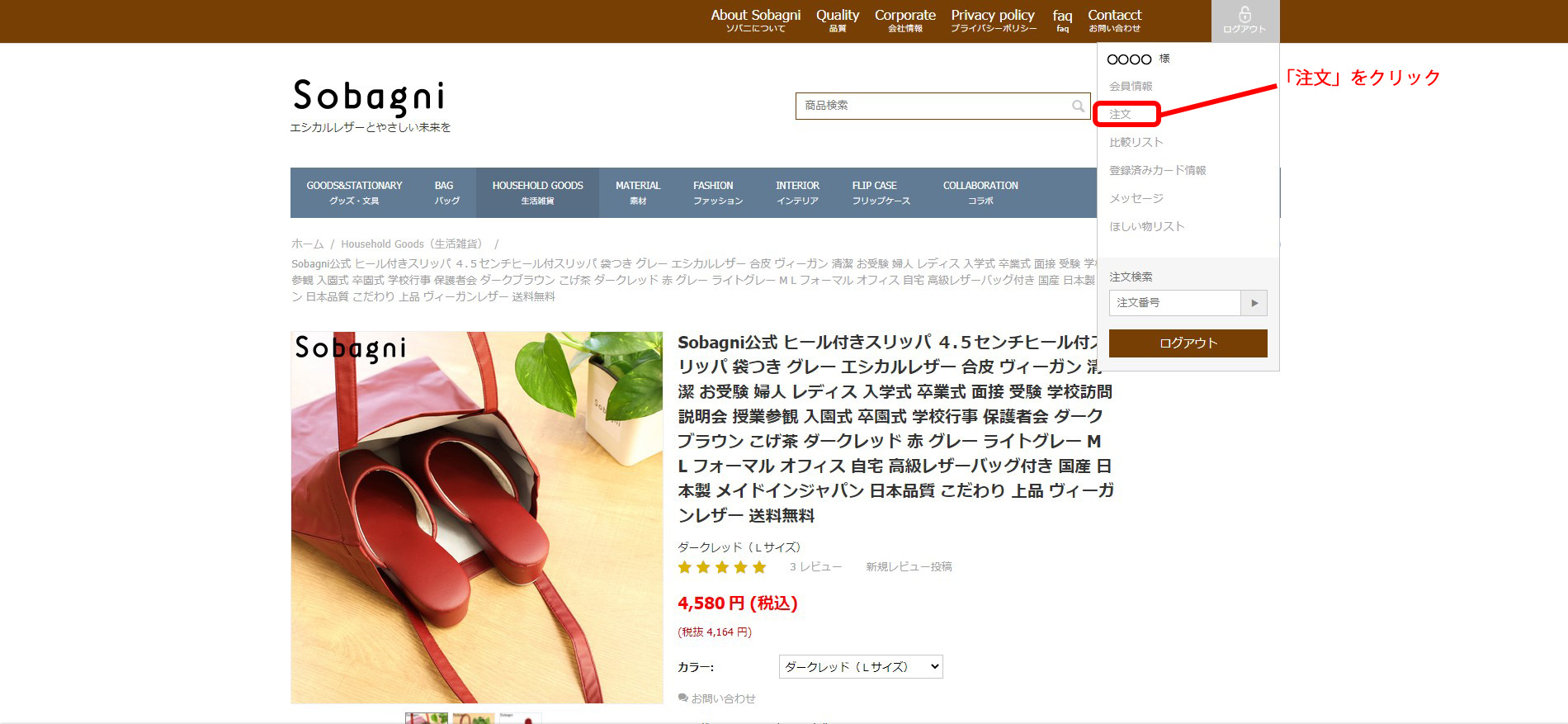 「注文」をクリックし、ご購入いただいた商品の商品ページを開きます。